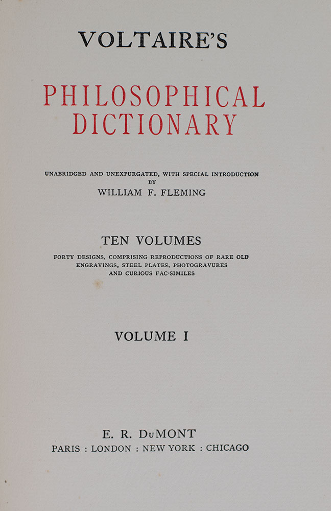 Voltaire's Philosophical Dictionary. Translated and Unexpurgated.