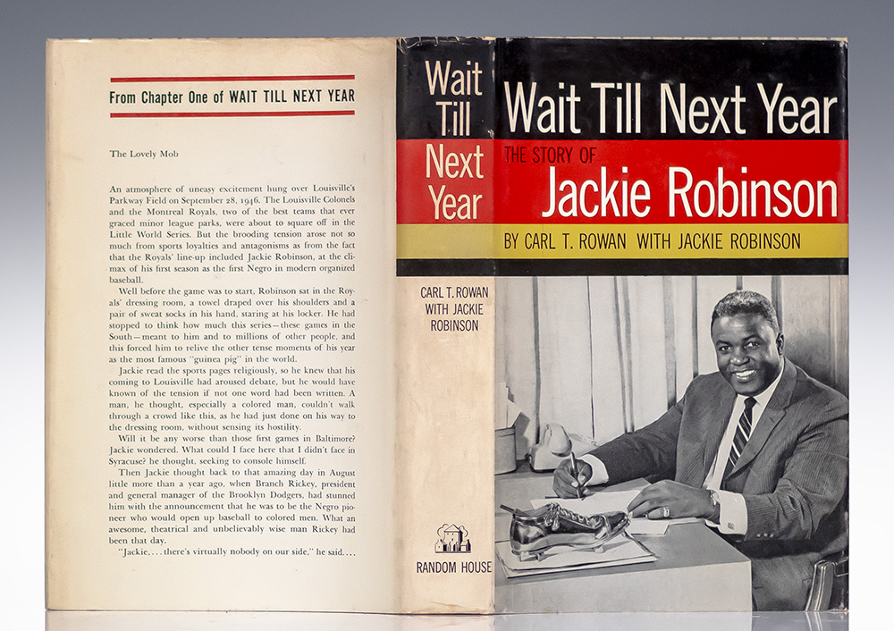 "Baseball is like a poker game. Nobody wants to quit when he's losing; nobody wants you to quit when you're ahead": First Edition of baseball legend Jackie Robinson's Wait Till Next Year; signed by Carl T. Rowan