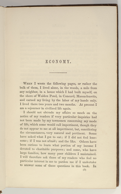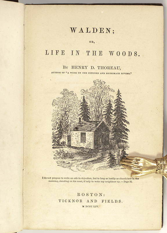 "I went to the woods because I wished to live deliberately, to front only the essential facts of life, and see if I could not learn what it had to teach, and not, when I came to die, discover that I had not lived": First Edition of Henry David Thoreau's Walden