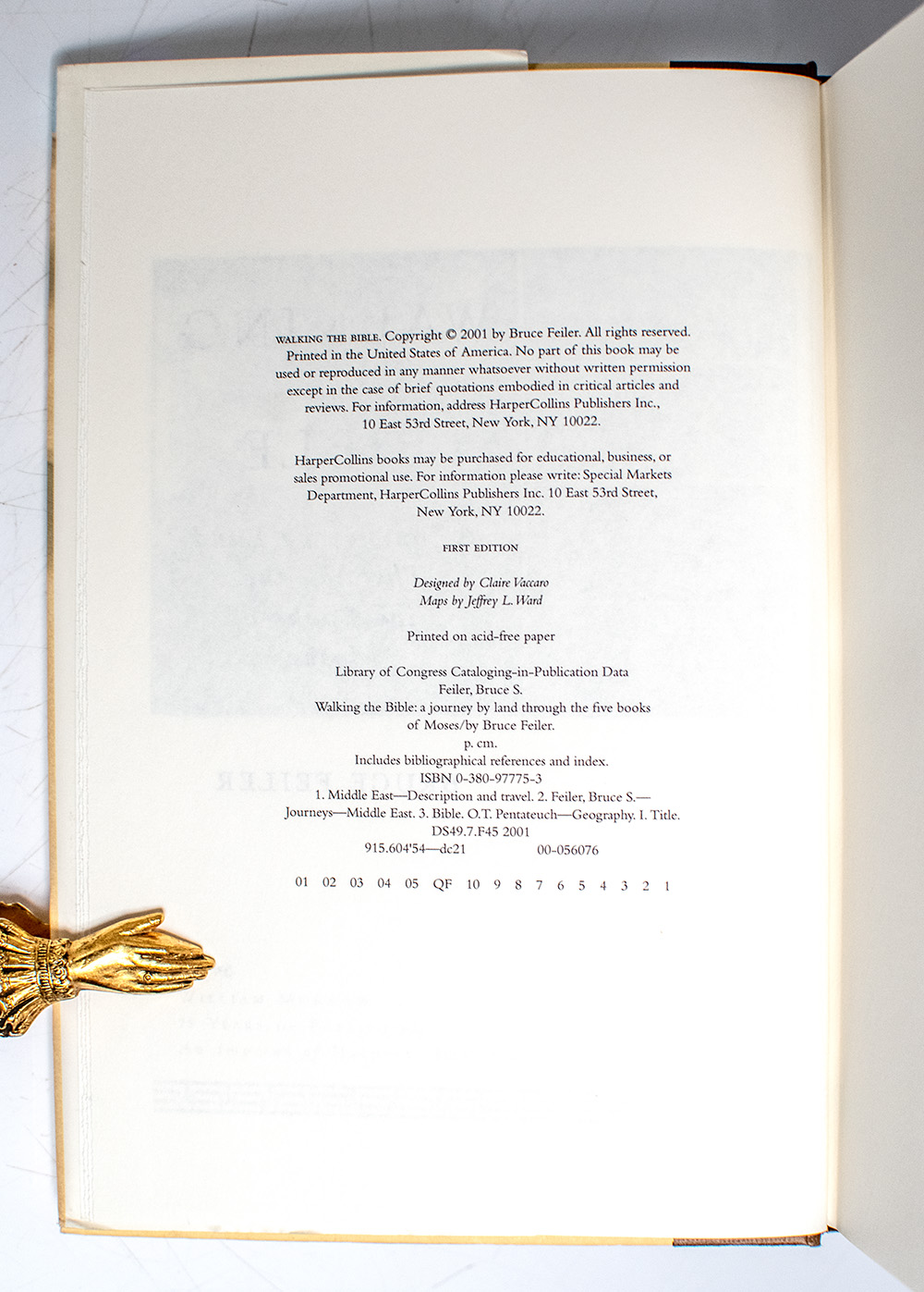First edition of this travel narrative and biblical scholarship. Octavo, original publisher's half-cloth, cartographic endpapers. Presentation copy, inscribed by the author on the half-title page, "Especially for Karen - A fellow traveler Bruce Feiler." Near fine in a near fine dust jacket, name to the front free endpaper. Jacket design by Beth Middleworth.