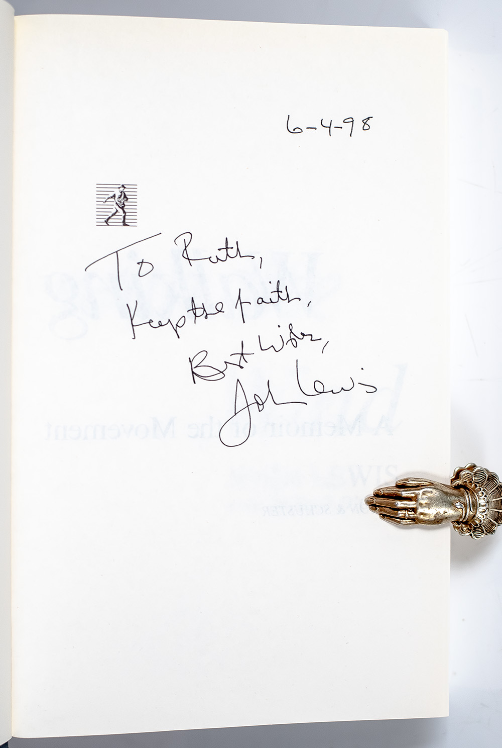 "THE DEFINITIVE ACCOUNT OF THE CIVIL RIGHTS MOVEMENT": THE CONGRESSMAN'S POWERFUL MEMOIR, First Edition of WALKING WITH THE WIND, WARMLY INSCRIBED BY JOHN LEWIS