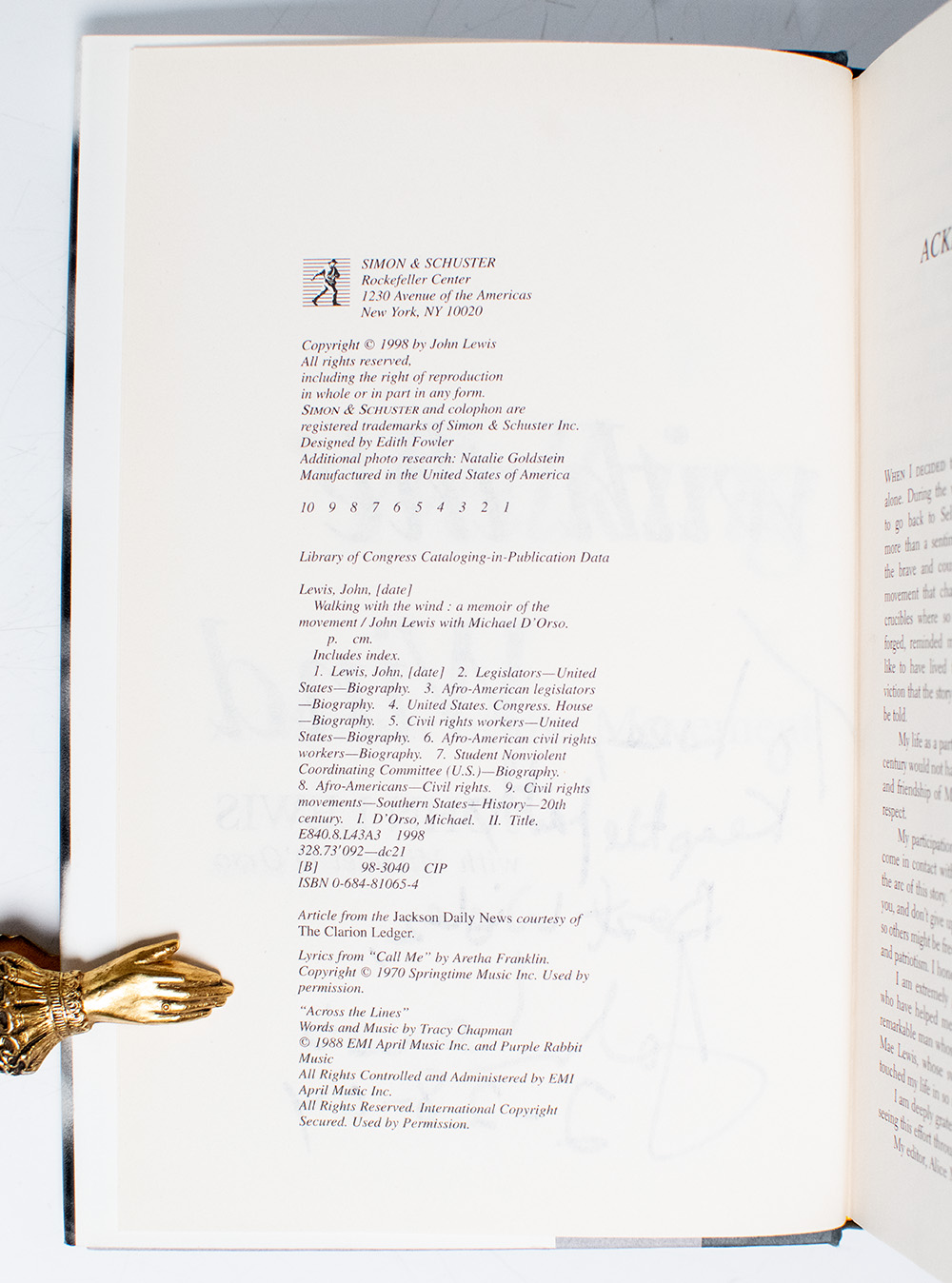 "THE DEFINITIVE ACCOUNT OF THE CIVIL RIGHTS MOVEMENT": THE CONGRESSMAN'S POWERFUL MEMOIR, First Edition of WALKING WITH THE WIND, INSCRIBED BY JOHN LEWIS