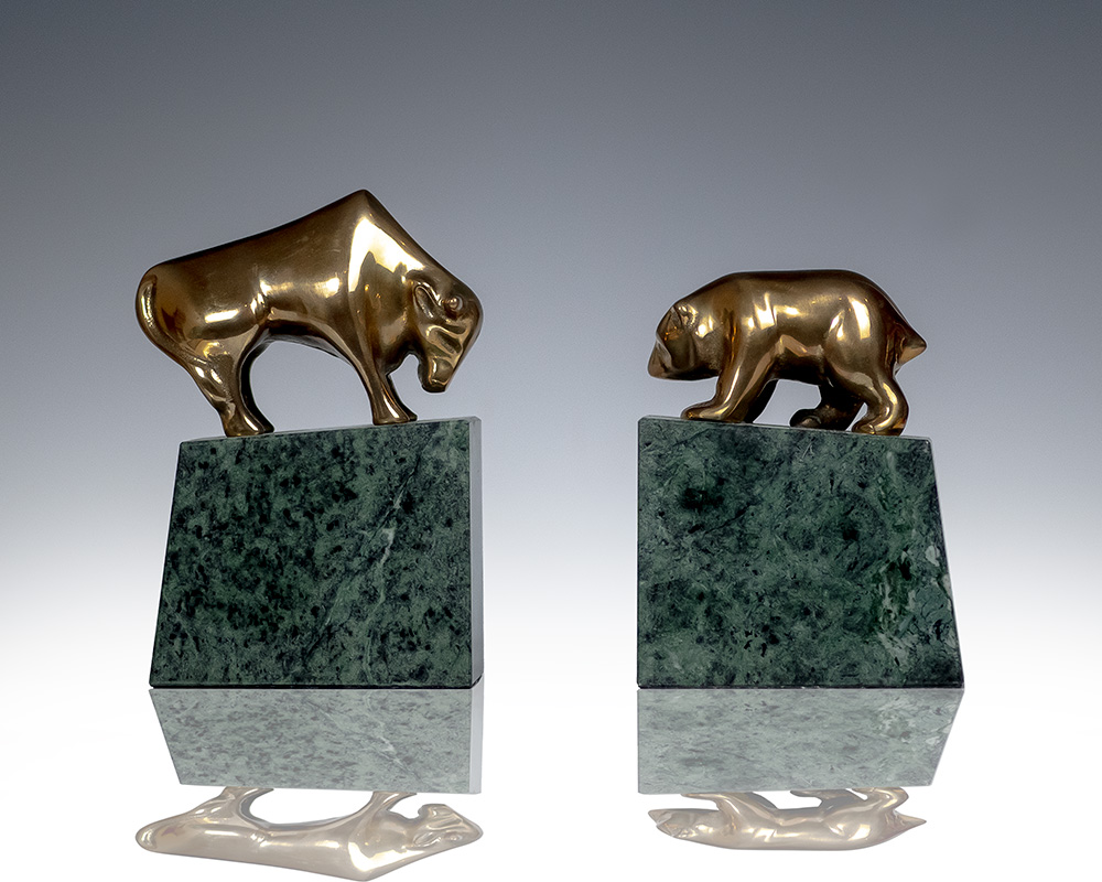 The bull and bear have become enduring symbols of Wall Street, representing opposing market trends that shape investor sentiment and financial discourse. The "bull market" symbolizes rising stock prices and investor confidence, while the "bear market" signifies falling prices and economic pessimism. These metaphors, rooted in the animals' respective attack styles—bulls thrusting upward and bears swiping downward—gained popularity in the 18th and 19th centuries alongside the rise of organized stock exchanges. Over time, particularly through media and popular culture, these symbols have been visually and rhetorically enshrined in the identity of Wall Street, epitomized by Arturo Di Modica’s 1989 Charging Bull sculpture near the New York Stock Exchange. Their continued use reflects not only market dynamics but also the emotional undercurrents that drive financial behavior in capitalist economies.