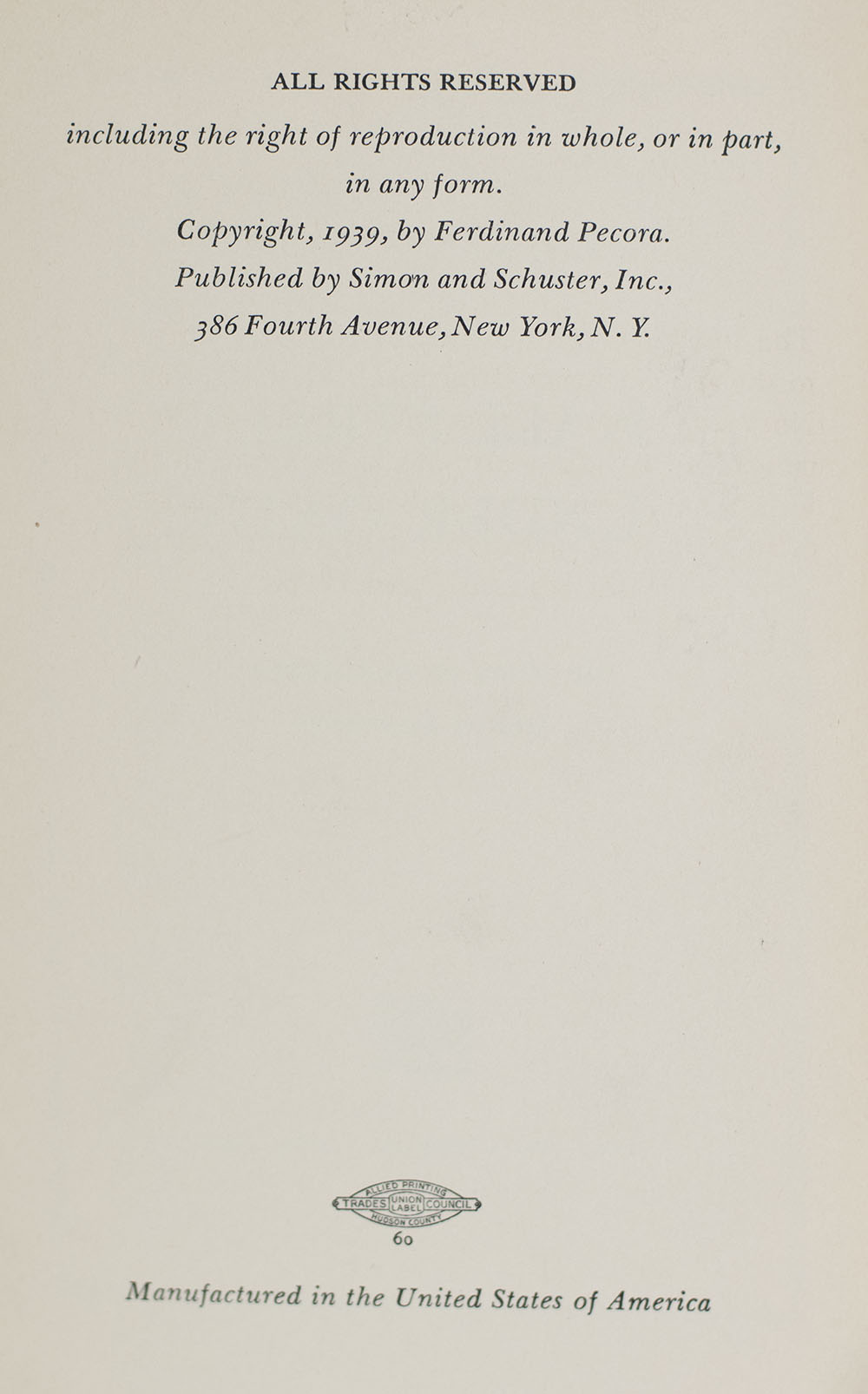 First Edition of Pecora's Rare Work on Wall Street; Finely Bound