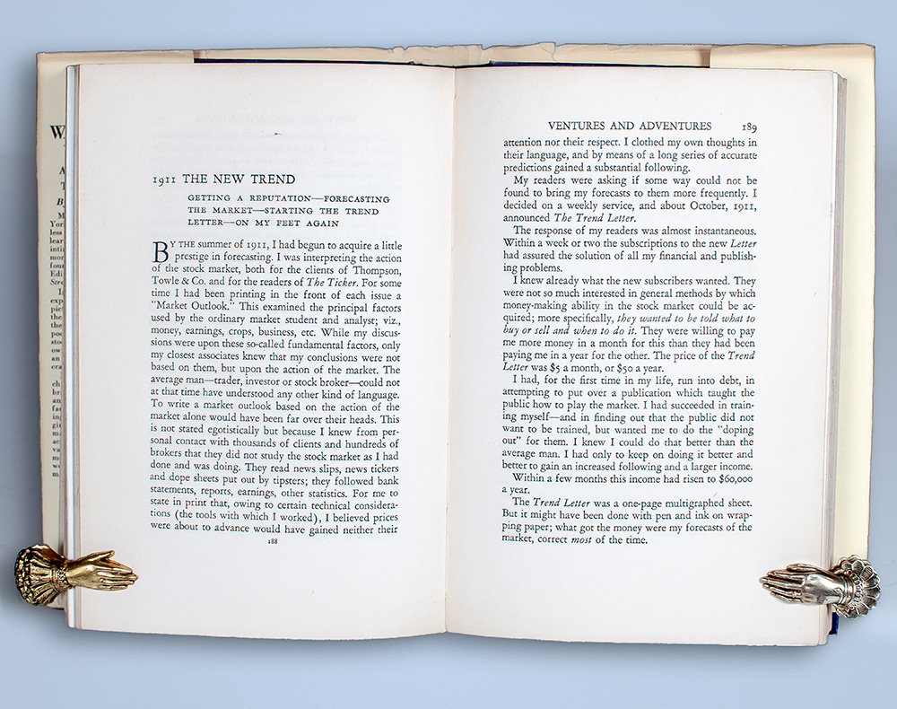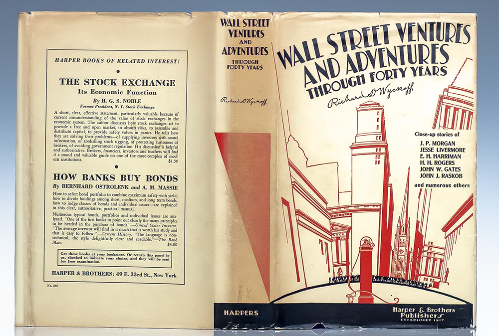 "The best inside information is on the tape": First Edition of Wall Street Ventures and Adventures: Through Forty Years; Lengthily Inscribed by Legendary Investor Richard Wyckoff and in the Rare Dust Jacket