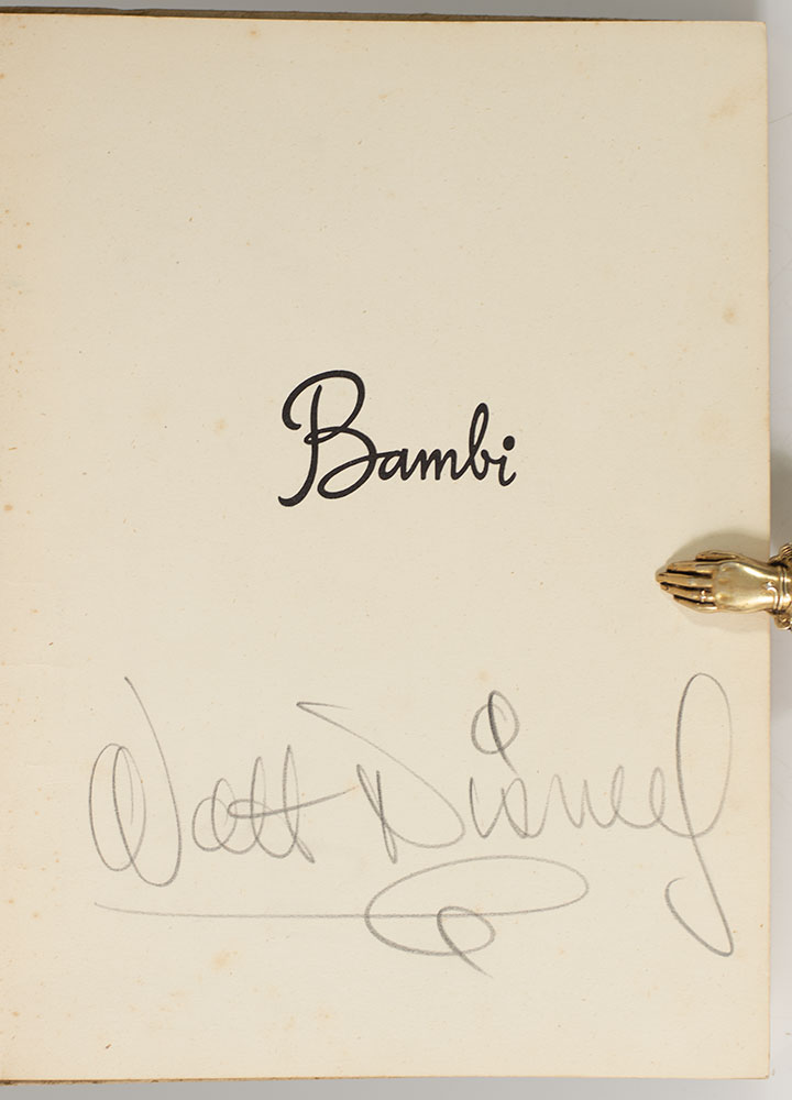 "Nearly everybody gets twitterpated in the springtime": First edition of Walt Disney's Bambi; signed by Walt Disney