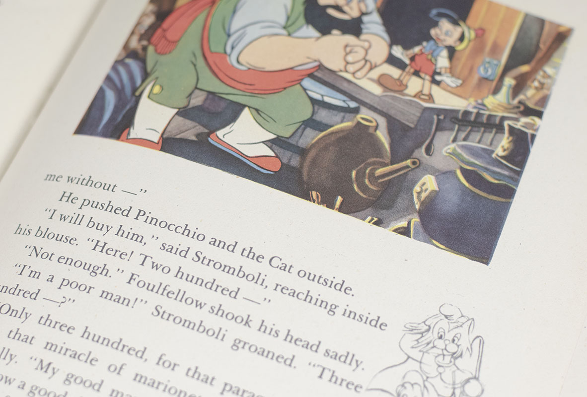 "STAR LIGHT, STAR BRIGHT - FIRST STAR I'VE SEEN TONIGHT. I WISH I MAY - I WISH I MIGHT - HAVE THE WISH I WISH TONIGHT!" FIRST EDITION OF WALT DISNEY'S VERSION OF PINOCCHIO: BASED ON THE STORY BY COLLODI, WITH ILLUSTRATIONS FROM THE MOTION PICTURE
