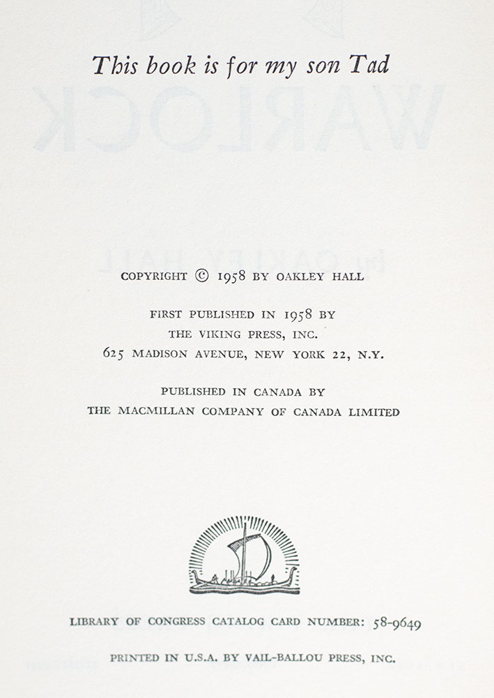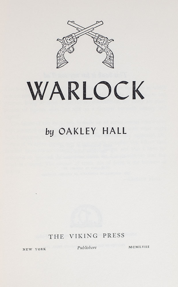 Oakley Hall's legendary Warlock revisits and reworks the traditional conventions of the Western to present a raw, funny, hypnotic, ultimately devastating picture of American unreality. First published in the 1950s, at the height of the McCarthy era, Warlock is not only one of the most original and entertaining of modern American novels but a lasting contribution to American fiction. "Also in '59 we simultaneously picked up on what I still think is among the finest of American novels, Warlock, by Oakley Hall. We set about getting others to read it too, and for a while had a micro-cult going. Soon a number of us were talking in Warlock dialogue, a kind of thoughtful, stylized, Victorian Wild West diction" (Thomas Pynchon). It is the basis for the 1958 film directed by Edward Dmytryk and starring Richard Widmark, Henry Fonda, Anthony Quinn and Dorothy Malone.