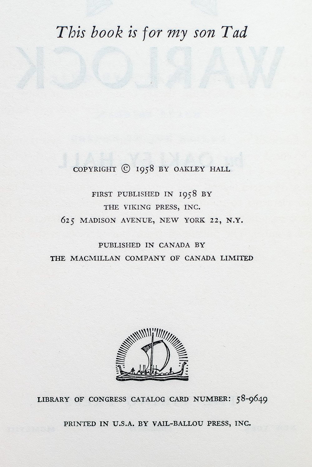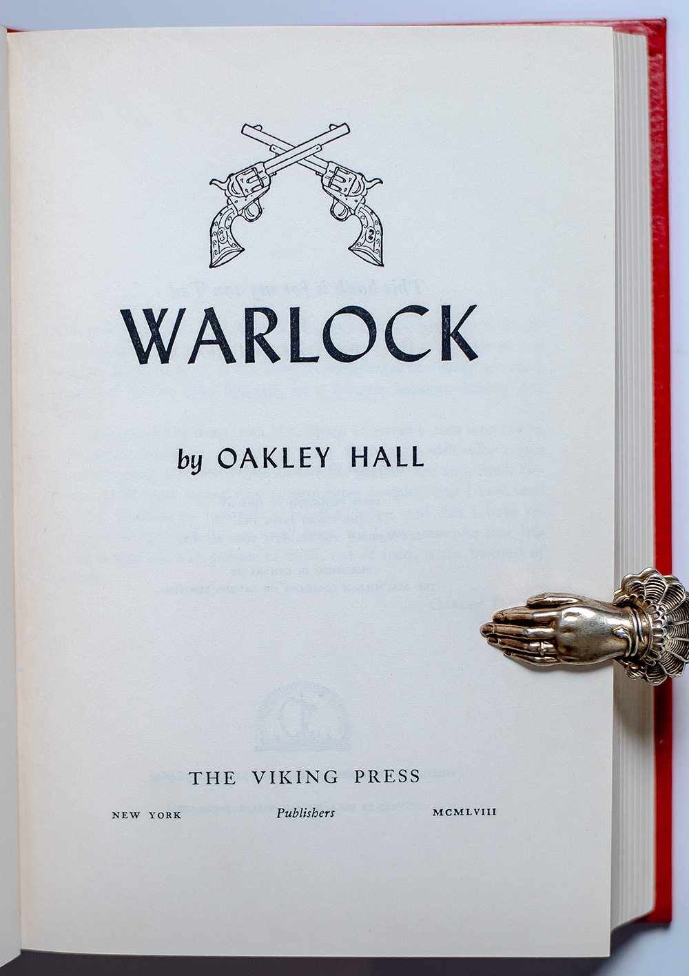 “The pursuit of truth, not of facts, is the business of fiction": First Edition of Oakley Hall's Warlock; Finely Bound by The Harcourt Bindery; Signed by Him