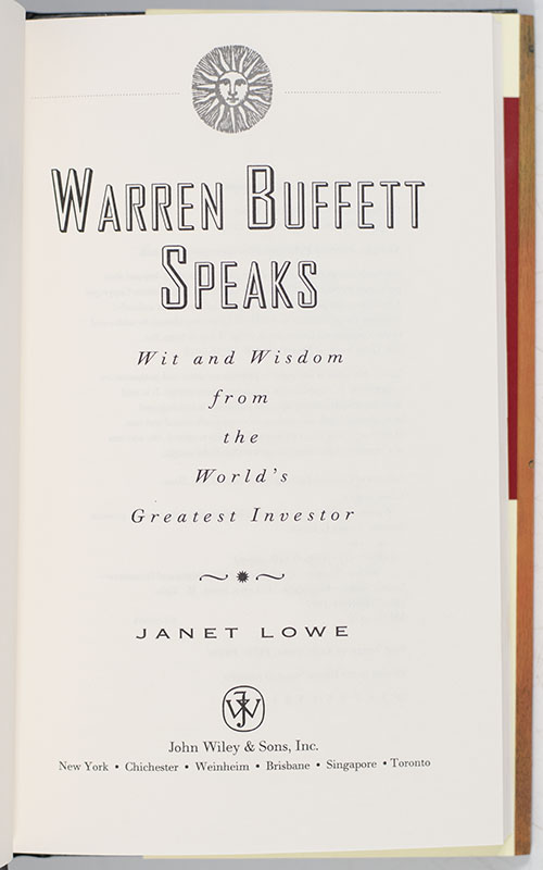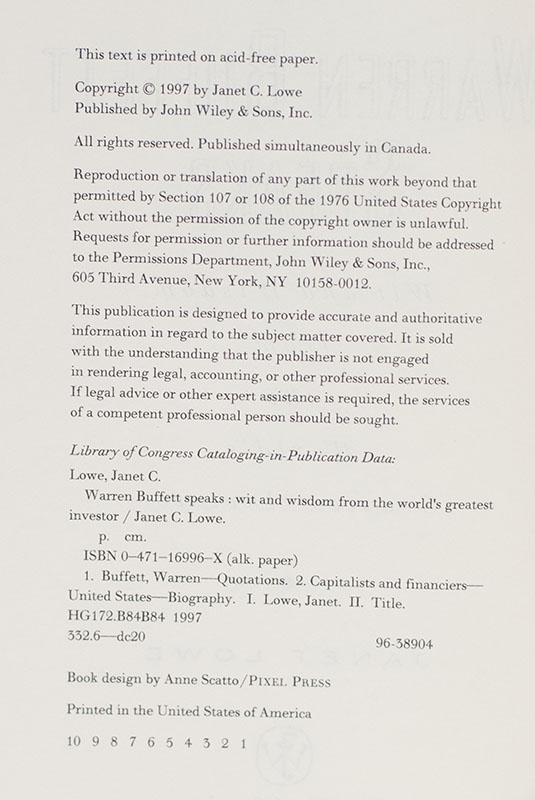 BUFFETT, Warren E. and Janet Lowe.