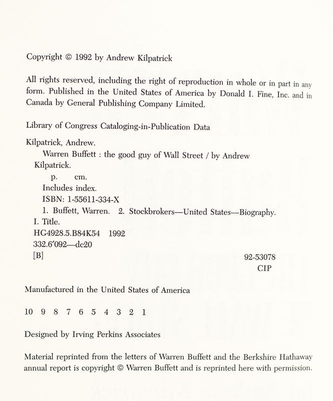 First Edition of Warren Buffett: The Good Guy of Wall Street; Signed by Warren Buffett and Andrew Fitzpatrick