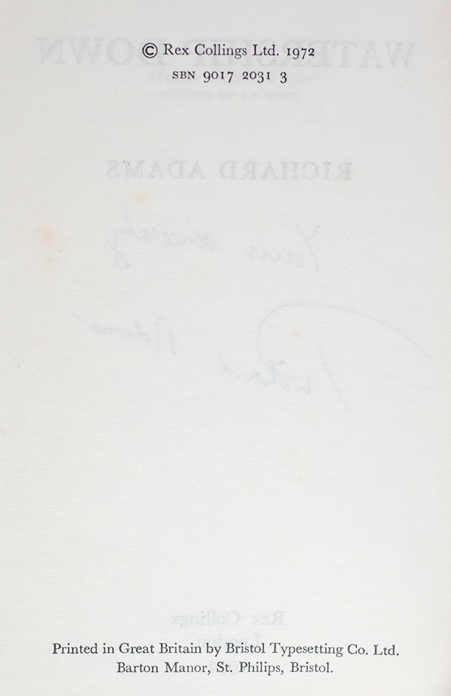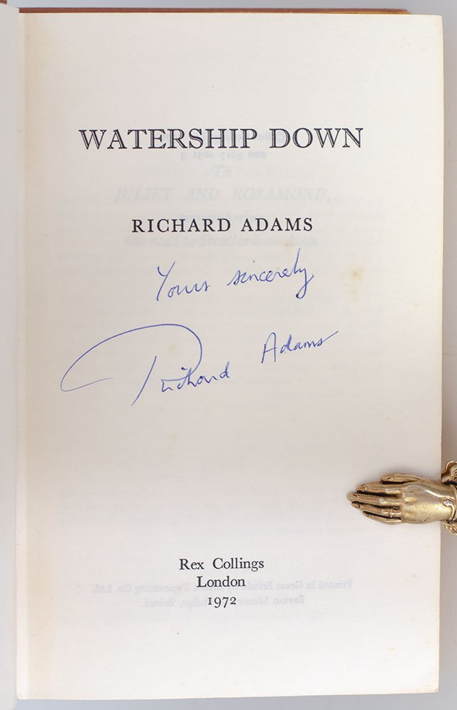 "Animals don't behave like men,' he said. 'If they have to fight, they fight; and if they have to kill they kill. But they don't sit down and set their wits to work to devise ways of spoiling other creatures' lives and hurting them. They have dignity and animality": First Edition of Watership Down; Signed by Richard Adams