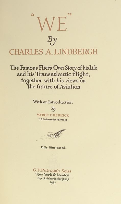 We is the autobiography of the famous flier, Charles A. Lindbergh, written almost immediately after his famous flight across the Atlantic Ocean from New York to Paris on May 20–21, 1927. This historic flight by Charles Lindbergh took him from being a little known US Postal Service Air Mail pilot and made him into one of the most famous if not the most famous person in the world. The main impetus for the flight was the $25,000 Orteig Prize offered by the French-born New York hotelier Raymond Orteig. He offered the prize to be awarded to the pilot of the first successful nonstop flight made in either direction between New York City and Paris. The book, which was also soon translated into most major languages, remained at the top of best-seller lists well into 1928, with more than 650,000 copies sold in the first year, and earned Lindbergh more than $250,000. The book's great commercial success was considerably aided by its publication coinciding with the start of his three-month tour of the United States in the Spirit on behalf of the Daniel Guggenheim Fund for the Promotion of Aeronautics. The nation became obsessed with Lindbergh during the tour in which he was seen in person by more than 30 million Americans, a quarter of the nation's then population. No other author before or since ever had such an extensive, highly publicized tour that helped promote a book than did Lindbergh's "We" of himself and the Spirit during their 22,350-mile tour of the US. He visited 82 cities in all 48 states during which the nation's nascent aviation superhero delivered 147 speeches and rode 1,290 miles in parades.