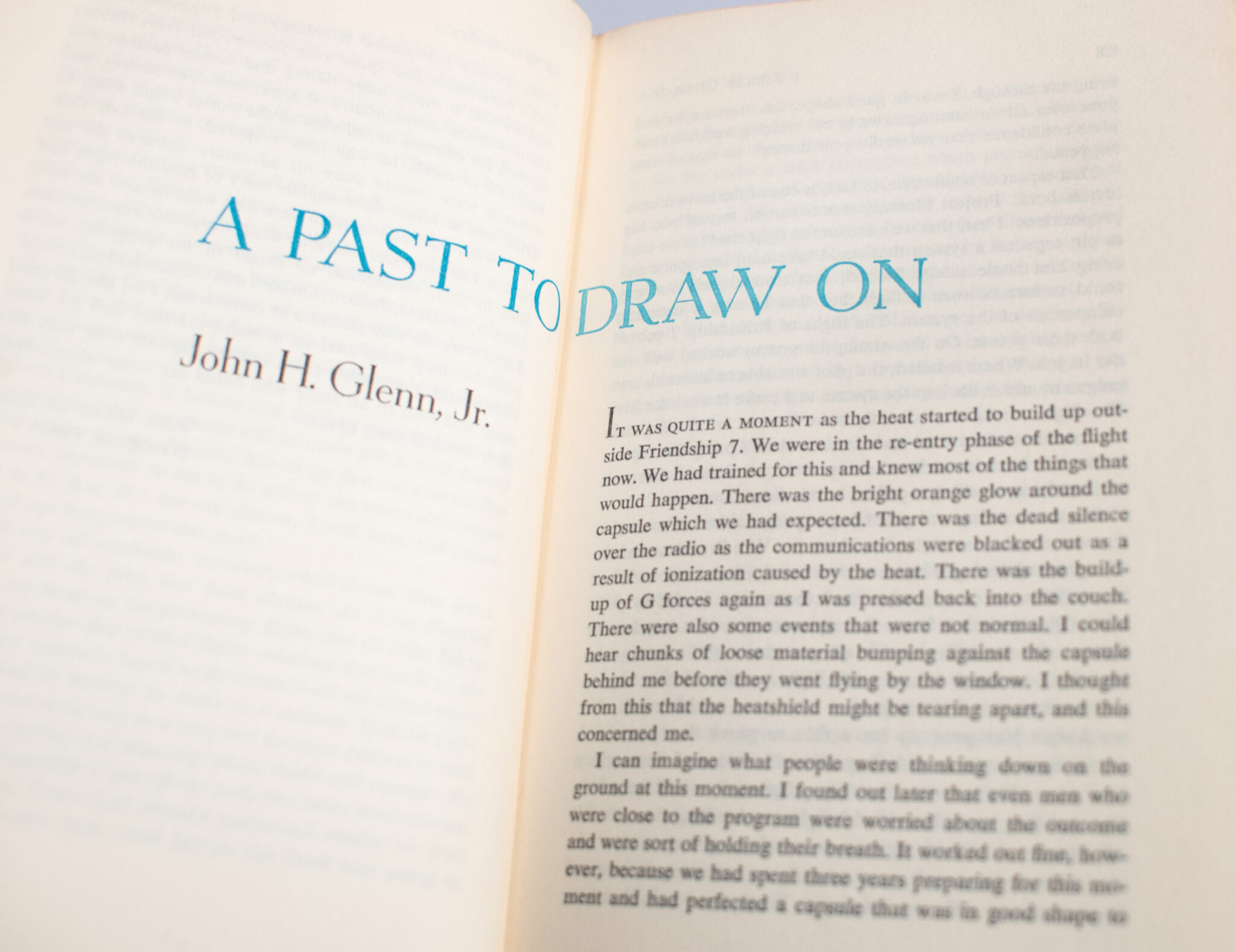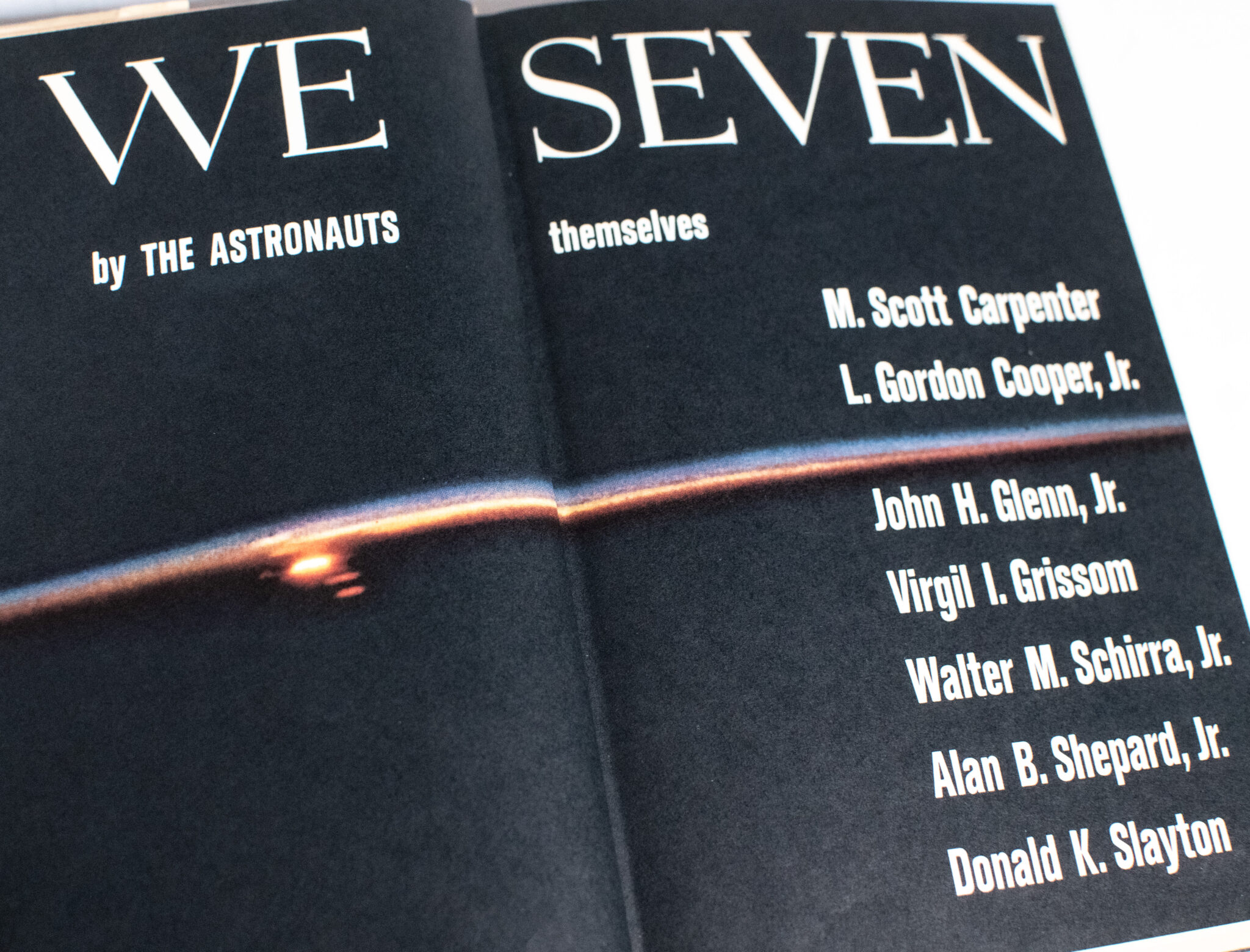“The first seven American astronauts were an admirable group of individuals chosen to sit at the apex of a pyramid of human effort… In volunteering to entrust their lives to Mercury’s spirit and Atlas’ strength to blaze a trail for man into the empyrean, they chose to lead by following the opportunity that chance, circumstance, technology and history had prepared for them” (Swenson, Grimwood & Alexander, 164-65). We Seven chronicles the beginnings of American manned space exploration from the perspectives of those who pioneered it, with each member of Project Mercury contributing at least three essay-length sections.