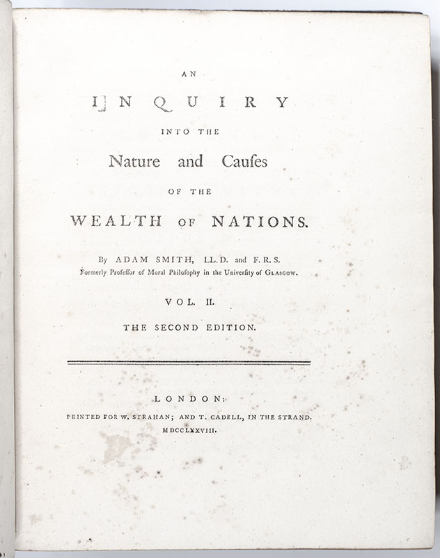 "First and greatest classic of modern economic thought": Second Edition of Adam Smith’s Wealth of Nations