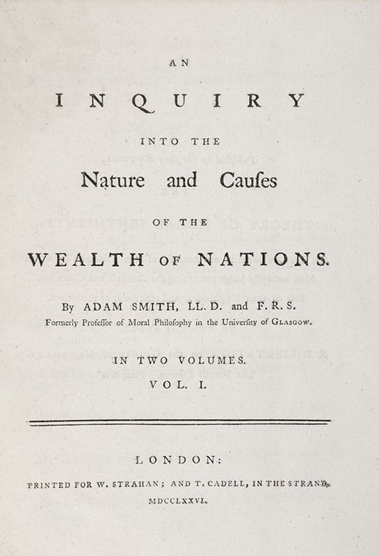 "First and greatest classic of modern economic thought": First Edition of Adam Smith’s Wealth of Nations