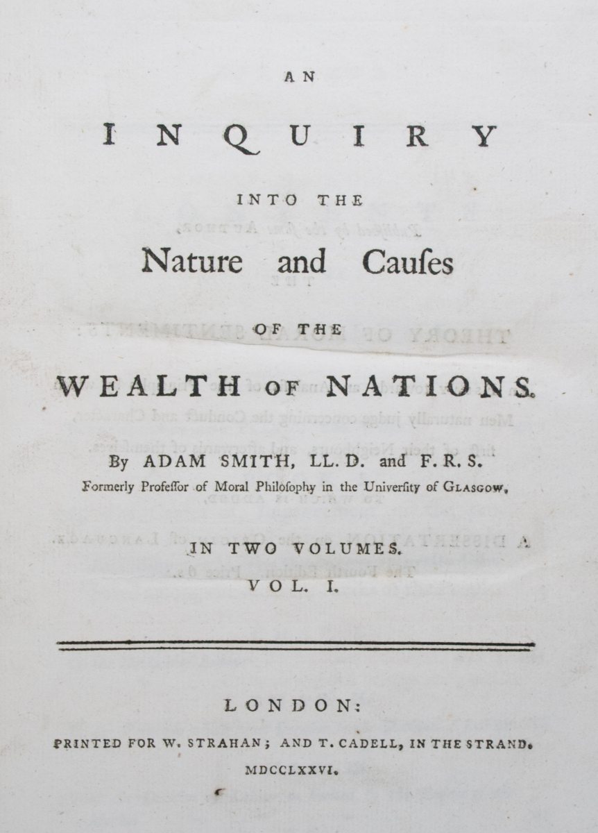 "First and greatest classic of modern economic thought": First Edition of Adam Smiths Wealth of Nations