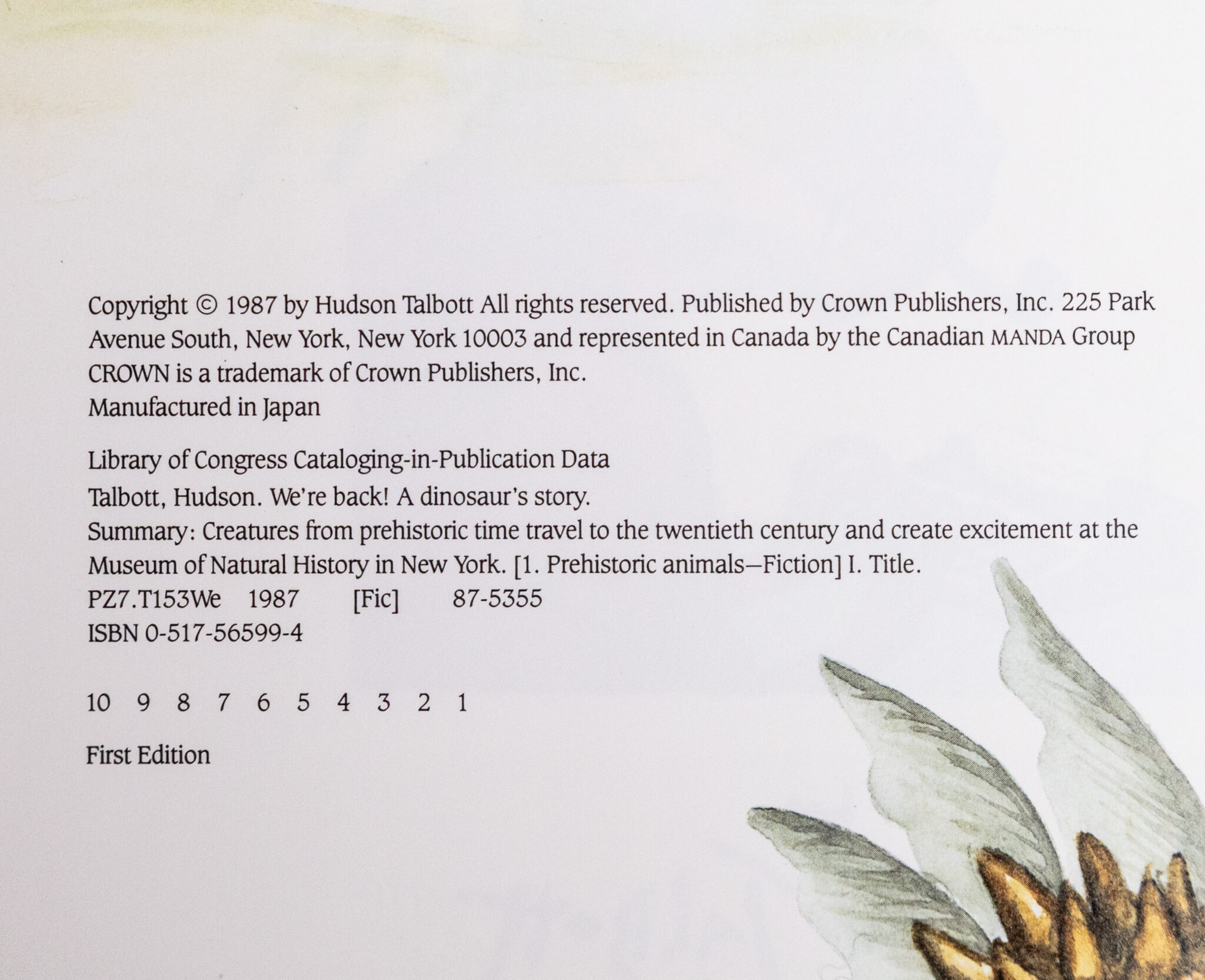 First Edition of We're Back!: A Dinosaur's Story; Inscribed by Hudson Talbott
