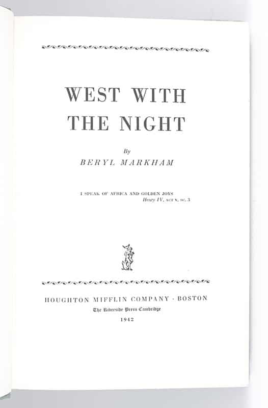 In 1939, three years after she became the first aviator to fly solo across the Atlantic Ocean from London to North America, Beryl Markham moved to the United States where she began writing her autobiography. Published in 1942, the book was favorably received, and revealed in detail the story of her childhood in British East Africa, her career as a horse trainer and bush pilot, and her pioneering transatlantic flight. Ernest Hemingway wrote in a letter to editor Maxwell Perkins: "Did you read Beryl Markhams book, West with the Night? I knew her fairly well in Africa and never would have suspected that she could and would put pen to paper except to write in her flyers log book. As it is, she has written so well, and marvelously well, that I was completely ashamed of myself as a writer. I felt that I was simply a carpenter with words, picking up whatever was furnished on the job and some times making an okay pig pen. But [she] can write rings around all of us who consider ourselves as writers. The only parts of it that I know about personally, on account of having been there at the time and heard the other peoples stories, are absolutely true I wish you would get it and read it because it is really a bloody wonderful book." In 2004, National Geographic Adventure ranked West With The Night number 8 in a list of 100 best adventure books.