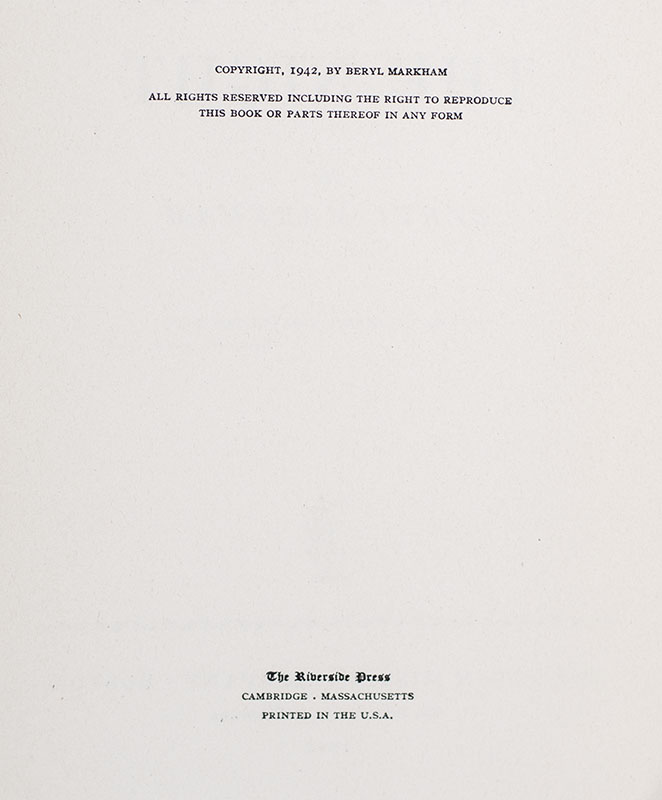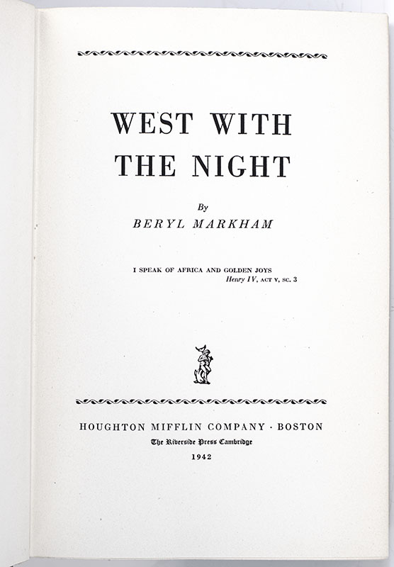 "The way to find a needle in a haystack is to sit down": First Edition of West With The Night; Signed by Beryl Markham