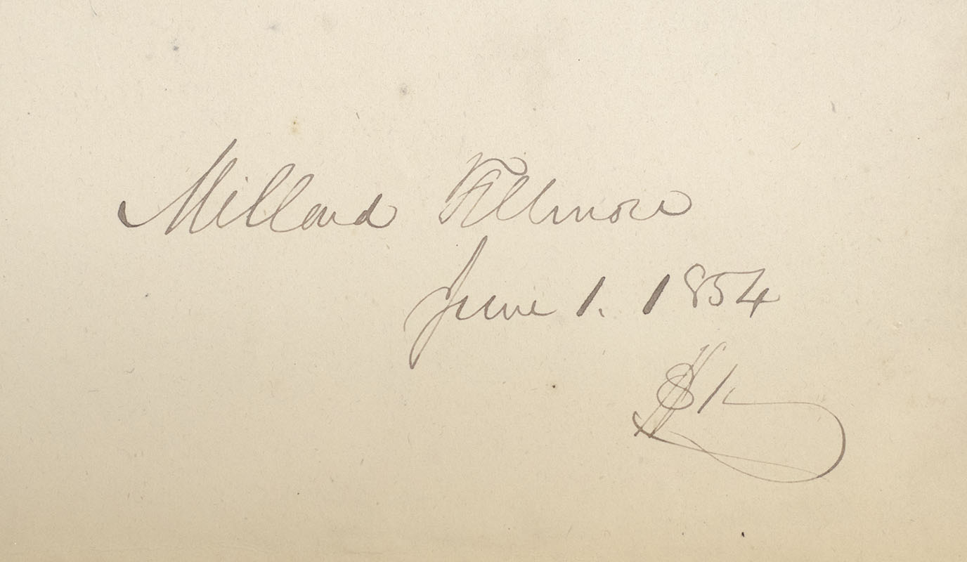 First edition of Daniel C. Curtiss' survey of the midwestern United States from the library of Millard Fillmore with his ownership signature to the front panel, "Millard Fillmore, June 1st, 1854 $1." Octavo, original cloth, blind stamping to the front and rear panels, gilt titles to the spine, folding map at rear. In very good condition.