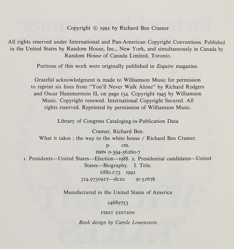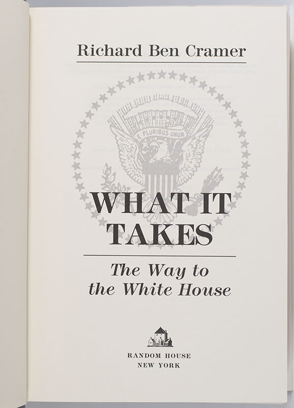 First Edition of Richard Ben Cramer's What It Takes: The Way to the White House; Signed by Him