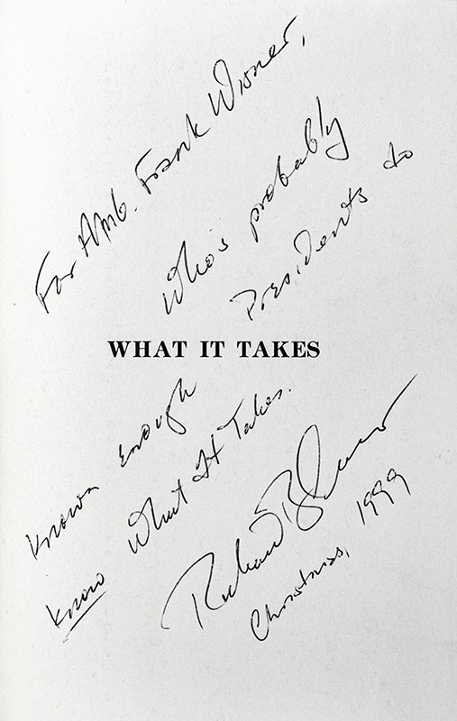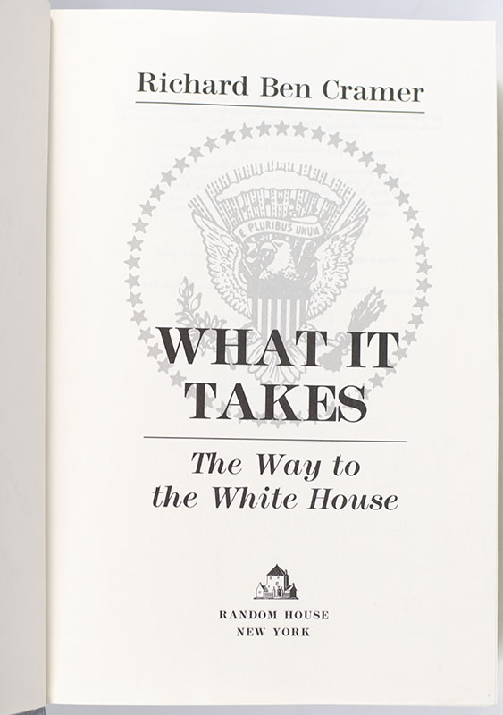 First Edition of Richard Ben Cramer's What It Takes: The Way to the White House; Inscribed by Him to Ambassador Frank Wisner