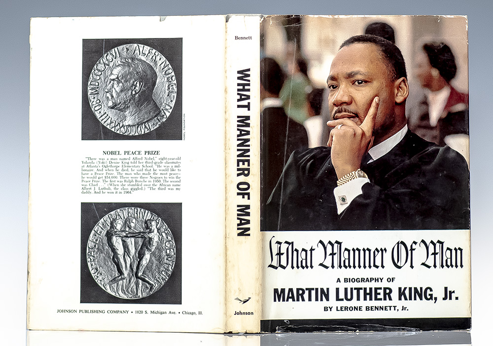 First edition of this early biography on Dr. King. Octavo, original cloth. Association copy, inscribed by the author on the front free endpaper, "For Al Green, With good wishes Lerone Bennett, Jr." The recipient, Al Green, is a singer, songwriter, and record producer best known for recording a series of soul hit singles in the early 1970s, including "Take Me to the River", "Tired of Being Alone", "I'm Still in Love with You", "Love and Happiness", and his signature song, "Let's Stay Together." Near fine in a very good dust jacket. With an introduction by Benjamin E. Mays. Jacket design by Herbert Temple. An excellent association.