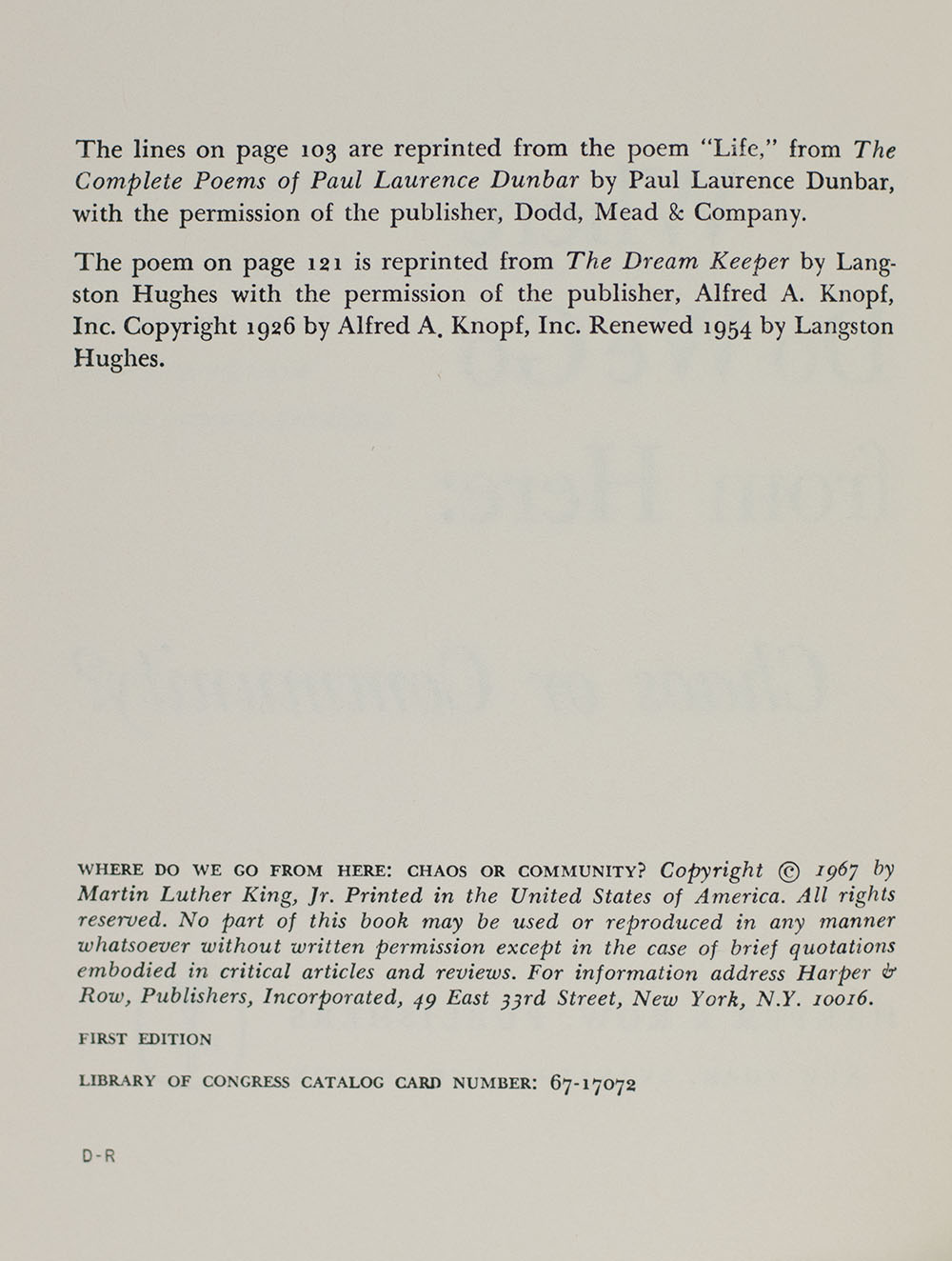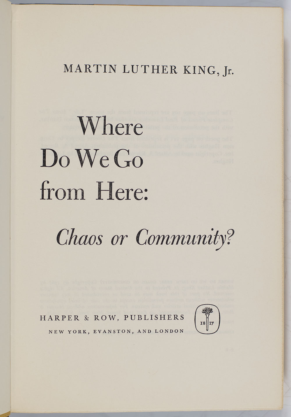 Review Copy of First Edition of Martin Luther's King Jr.'s Where Do We Go From Here: Chaos or Community?