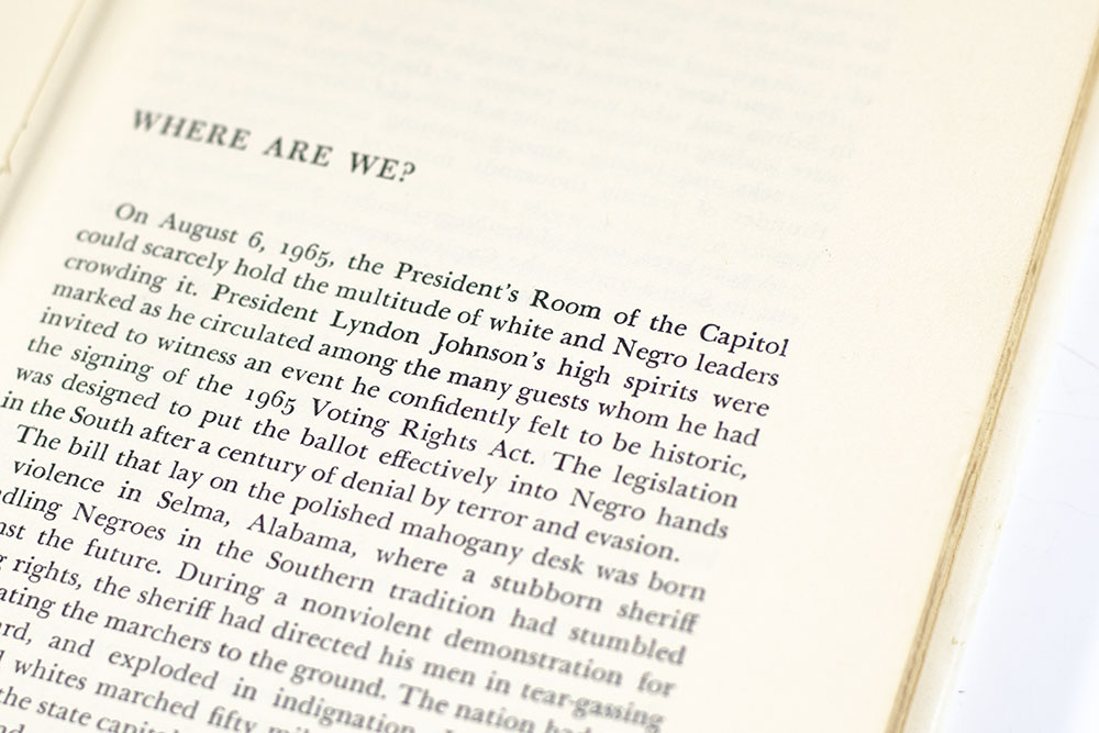 Where Do We Go from Here is Dr. King’s analysis of the state of American race relations and the movement after a decade of U.S. civil rights struggles. ‘‘With Selma and the Voting Rights Act one phase of development in the civil rights revolution came to an end,’’ he observed (King, 3). King believed that the next phase in the movement would bring its own challenges, as African Americans continued to make demands for better jobs, higher wages, decent housing, an education equal to that of whites, and a guarantee that the rights won in the Civil Rights Act of 1964 and the Voting Rights Act of 1965 would be enforced by the federal government.