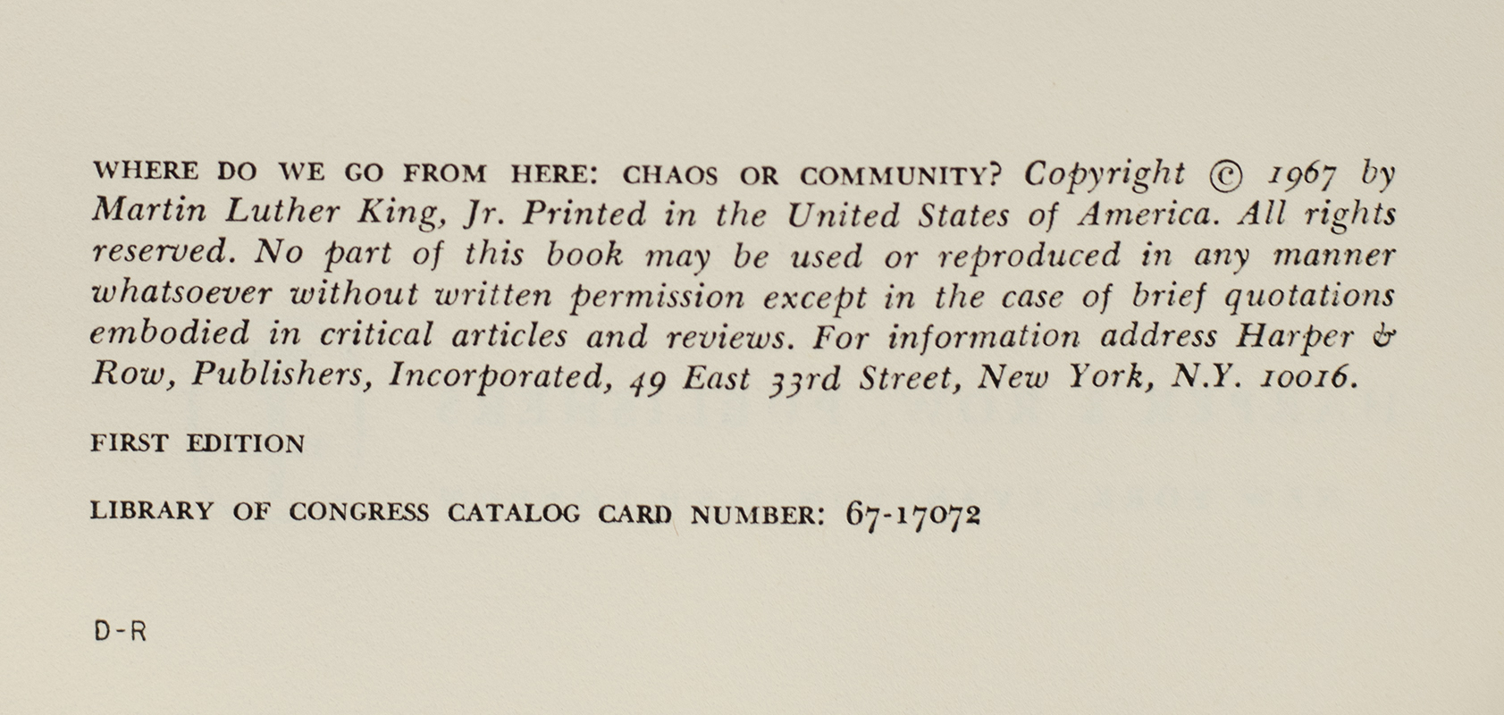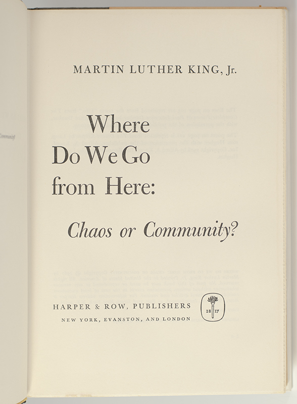 First Edition of Martin Luther's King Jr.'s Where Do We Go From Here: Chaos or Community?; inscribed by him