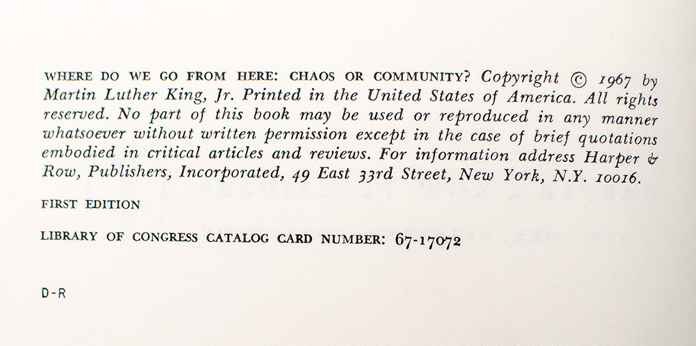 First Edition of Where Do We Go From Here: Chaos or Community?; Inscribed by Martin Luther King, Jr.