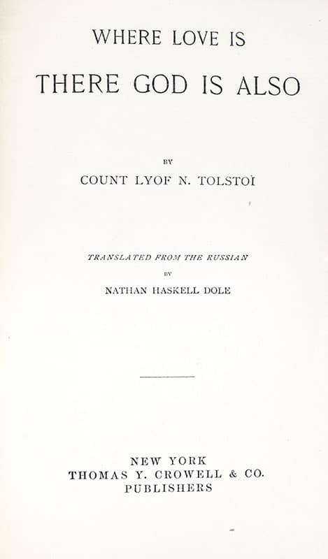 First American Edition of Leo Tolstoy's Where Love is, There God is Also