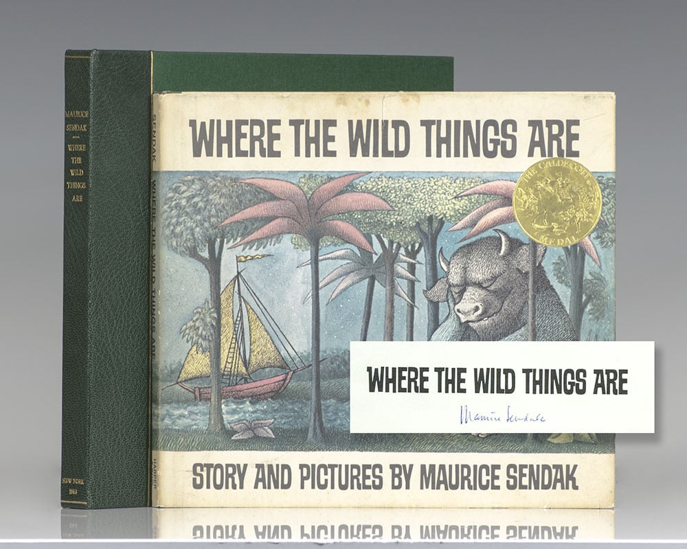 "And now," cried Max, "let the wild rumpus start!": First Edition of Where the Wild Things Are; Signed by Maurice Sendak with a Drawing Of Mickey Mouse