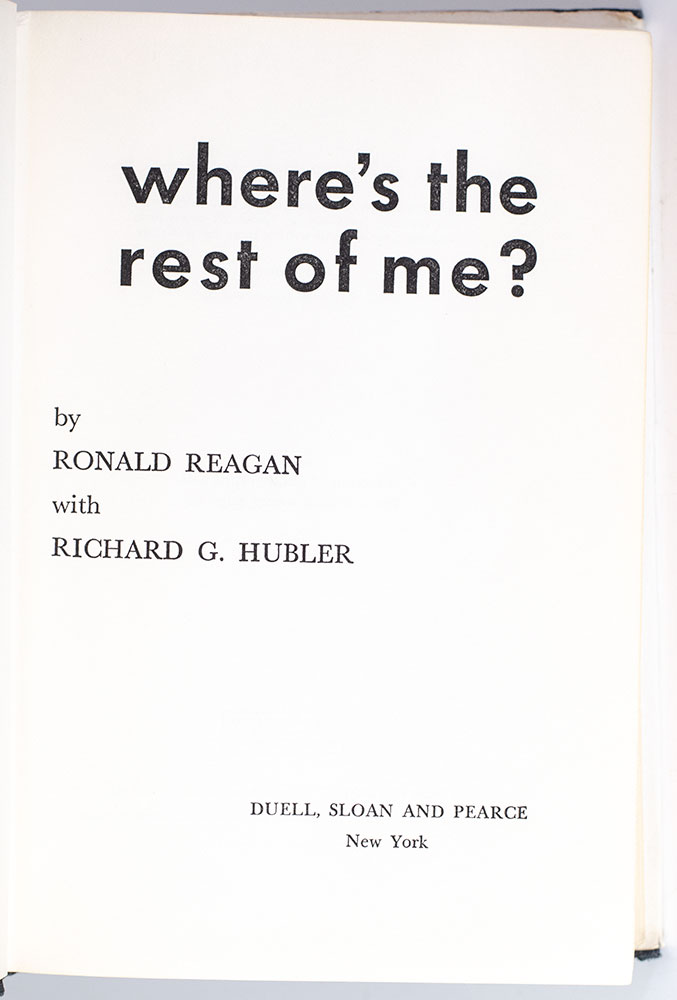 "Where's the rest of me" is Reagans famous line from the hit movie "King's Row". The release of his autobiography coincided with his run for the California governorship.