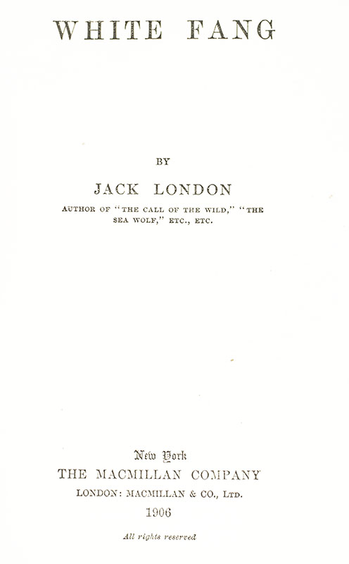 "The Wild Still Lingered in him and the wolf in him merely slept": First Edition of Jack London's White Fang accompanied by a rare Oakland Central Bank check signed by London