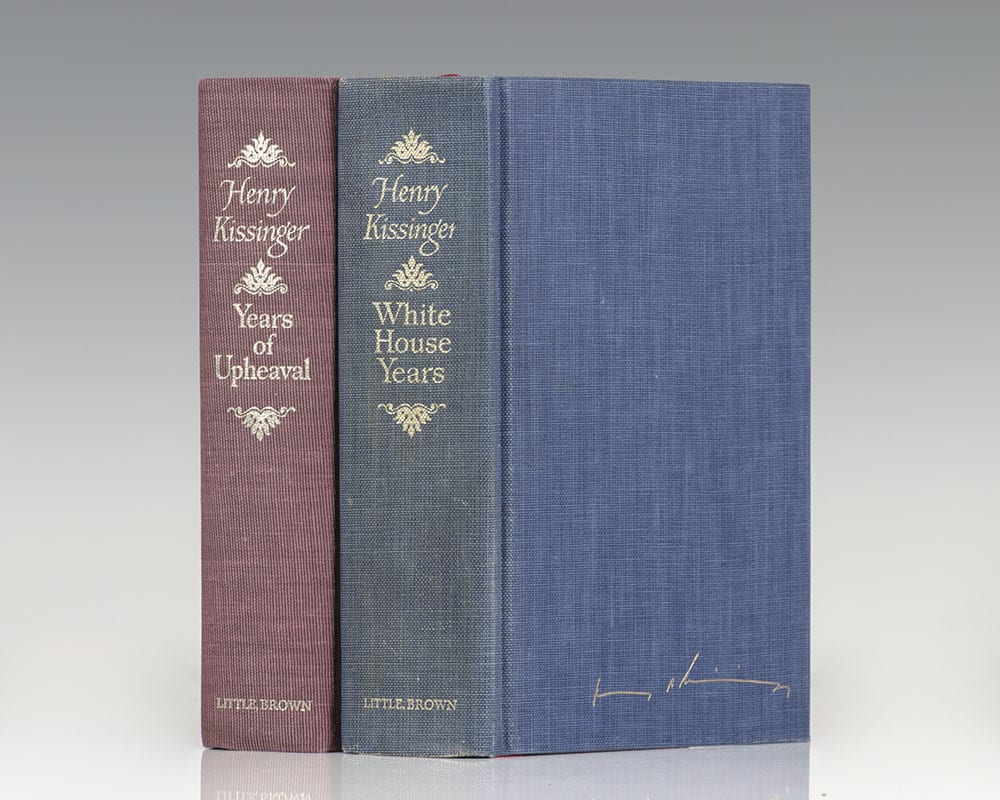 Signed limited editions of both White House Years and Years of Upheaval. Octavo, original cloth, housed in the original slipcases. Both volumes are signed limited editions. White House Years is number 1015 of 3500 signed numbered copies. Years of Upheaval is number 339 of 1500 signed numbered copies. Illustrated with 48 pages of photographs. In near fine condition.