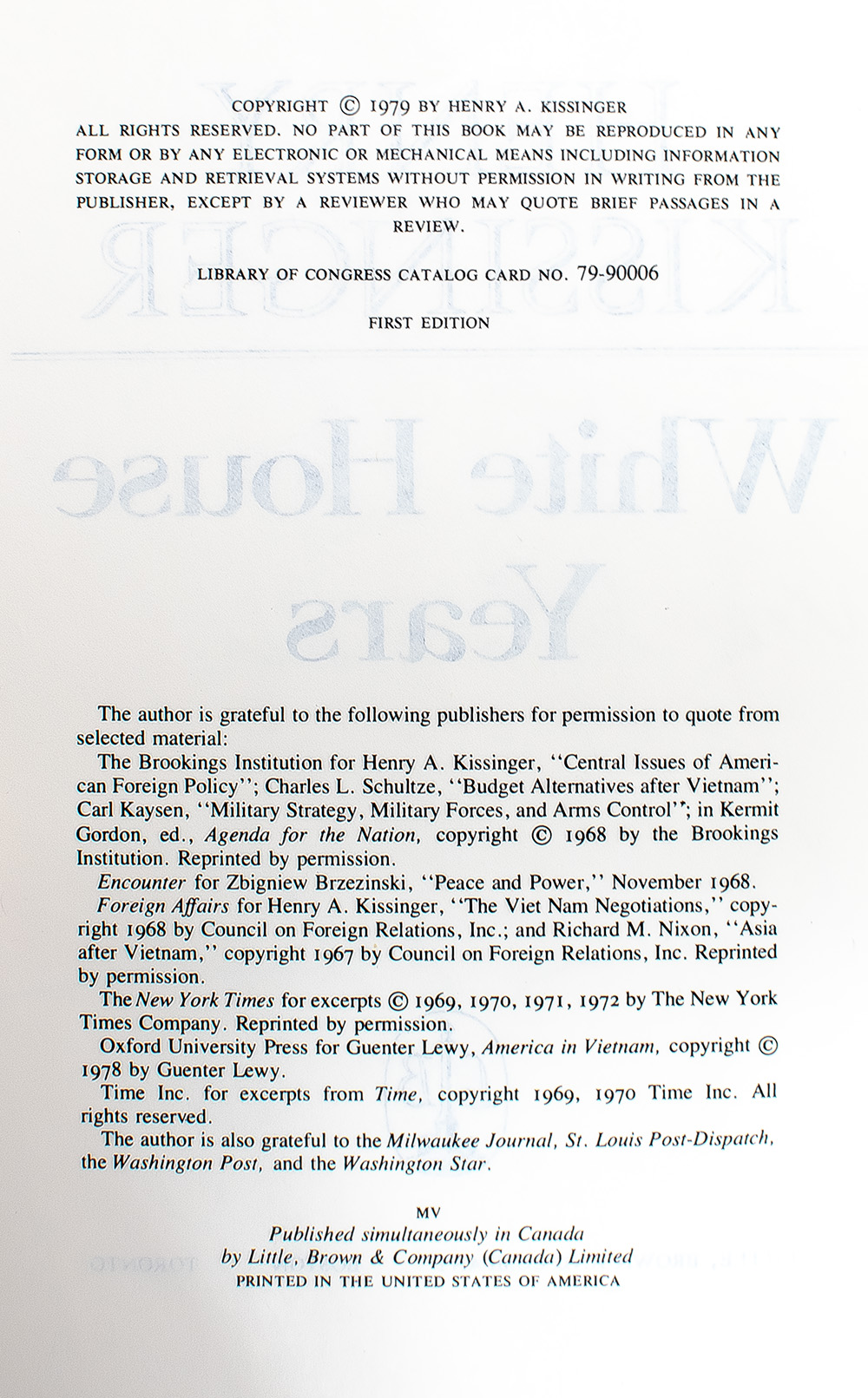 First Edition of White House Years; Inscribed by Henry Kissinger