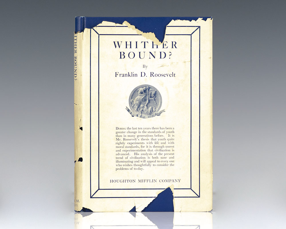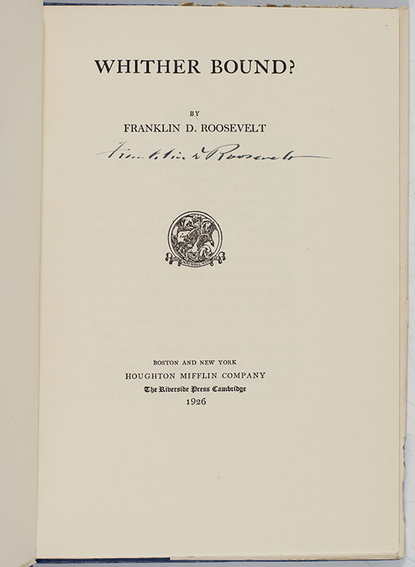 First edition of Franklin Delano Roosevelt's first book Whither Bound?; signed and inscribed by him to his son