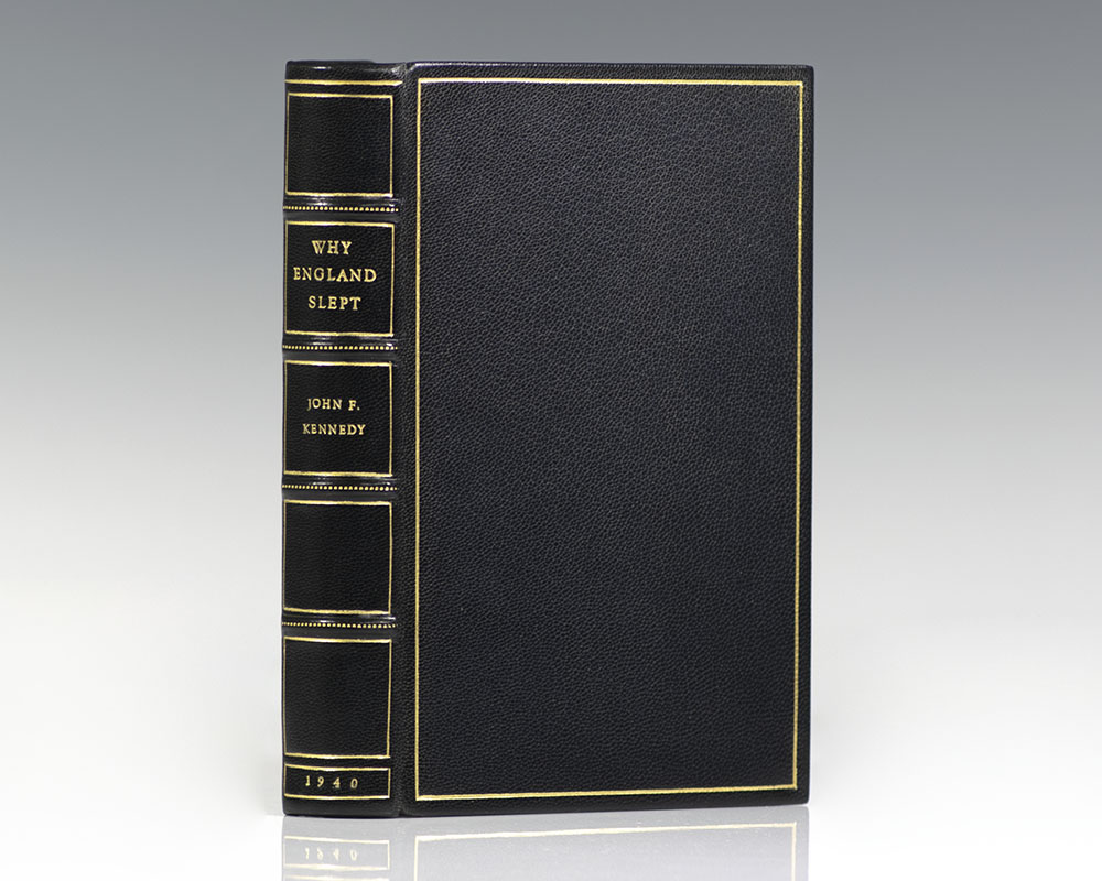 First edition of John F. Kennedy's first book. Octavo, bound in full morocco, gilt titles and ruling to the spine, raised bands, gilt ruled to the front and rear panels, marbled endpapers, all edges gilt. In fine condition.