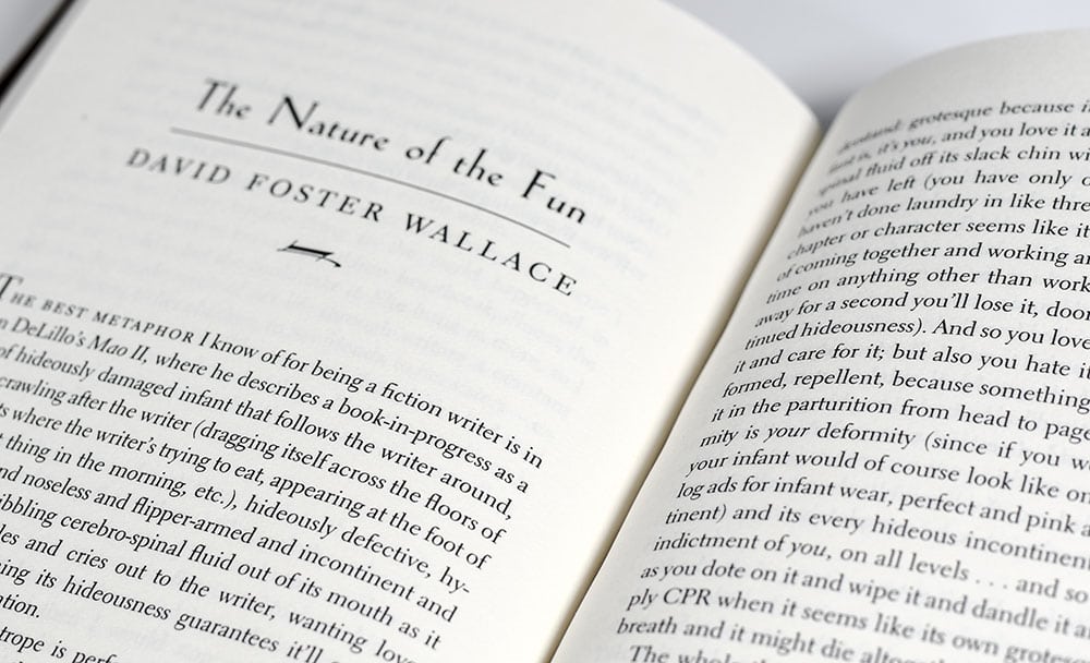 First edition of this collection of essays. Octavo, original cloth. Boldly signed by contributor David Foster Wallace on the front free endpaper. The essay contributed to this volume is one of his finest, titled, "The Nature of the Fun", which is a meditation on why writers write, encrusted in Wallace’s signature blend of self-conscious despondency. Near fine in a fine dust jacket. Jacket design by John Fulbrook III. Rare and desirable signed by Foster Wallace, this is the first example we have seen.