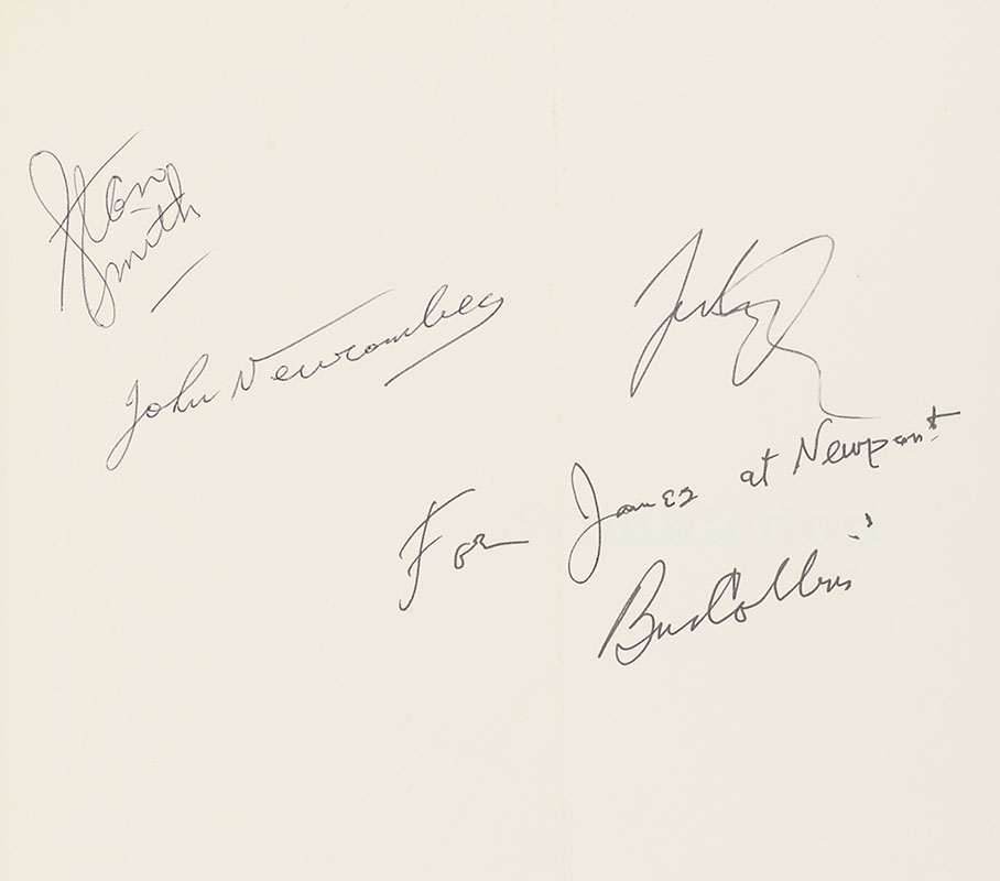 First edition of this work on Wimbledon. Quarto, original cloth, illustrated. Signed on the title page by John McPhee and additionally by Rod Laver and Rafael Nadal. Signed on the front free endpaper by Stan Smith, John Newcombe, John Isner and inscribed by Bud Collins. Signed by Lleyton Hewitt on the half-title page. Near fine in a near fine dust jacket. A unique example.