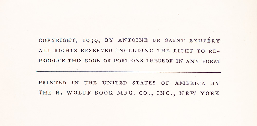 First Edition of Antoine Saint-Exupery's Wind, Sand and Stars; Finely Bound by the Harcourt Bindery