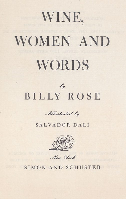 "What I don't know would fill a book. And, dear reader, it's going to": Billy Rose's Wine, Women and Words; illustrated by Salvador Dali