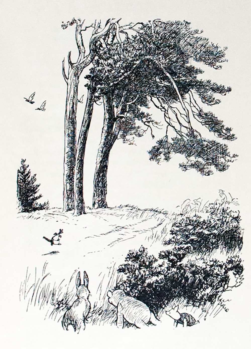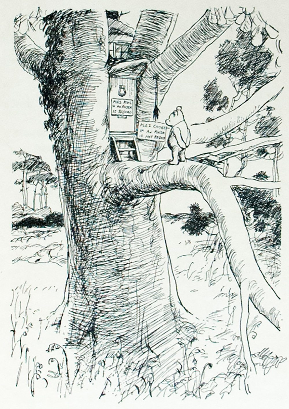 “Milne’s Winnie-the-Pooh has been considered a classic of children’s literature almost since its publication” (Cooper & Cooper). In 1925, A.A. Milne purchased “a Sussex farmhouse for use as a weekend and holiday alternative to the family’s London home… [that would] provide the setting for the stories he now started to write about [his son] Christopher’s toys… Winnie-the-Pooh and The House at Pooh Corner [its companion volume, published 1928] are, on their own terms, more successful as works written for children than anything else produced during children’s literature’s Golden Age” (Carpenter). “Ernest H. Shepard’s illustrations, modeled after the actual toys, show character and movement in simple line vignettes, which add so much to the books that most people consider them to be inseparable from the texts” (Silvey).
