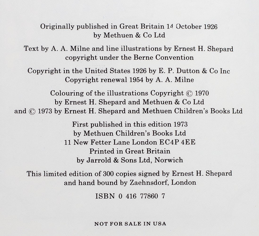 “HERE IS EDWARD BEAR, COMING DOWNSTAIRS NOW, BUMP, BUMP, BUMP…”: Signed Limited EDITION OF A.A. MILNE'S BELOVED WINNIE-THE-POOH