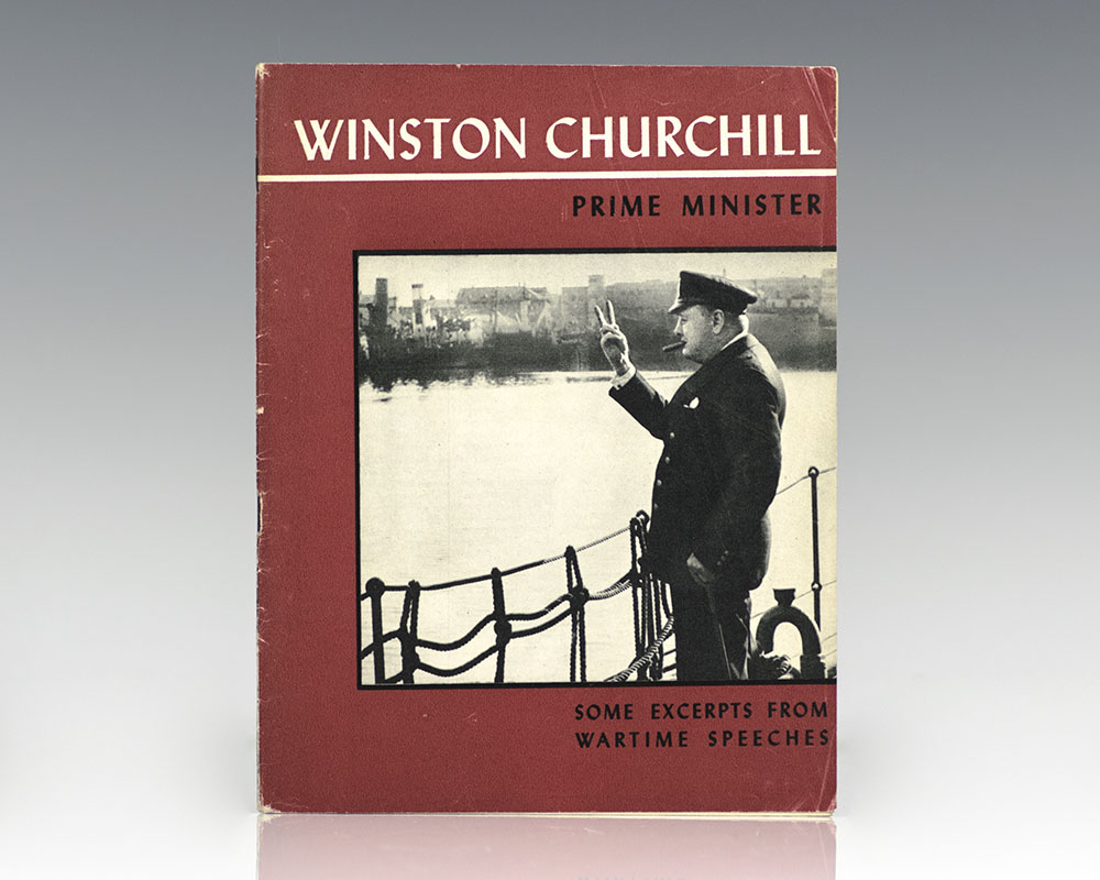First edition of this illustrated compendium of excerpts from Winston S. Churchill's famed wartime speeches. Octavo, original illustrated wrappers as issued, each spread features a black and white photograph of Churchill accompanied by a quote from his WWII speeches and broadcasts. In near fine condition.