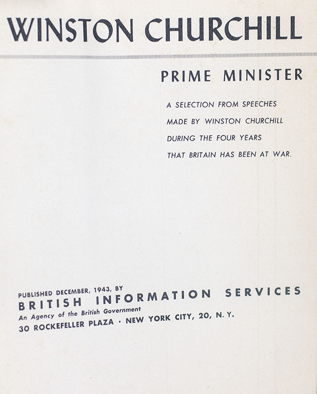 "We are at war, and we are going to make war": Rare first edition pamphlet of Excerpts from Winston S. Churchill's Wartime Speeches