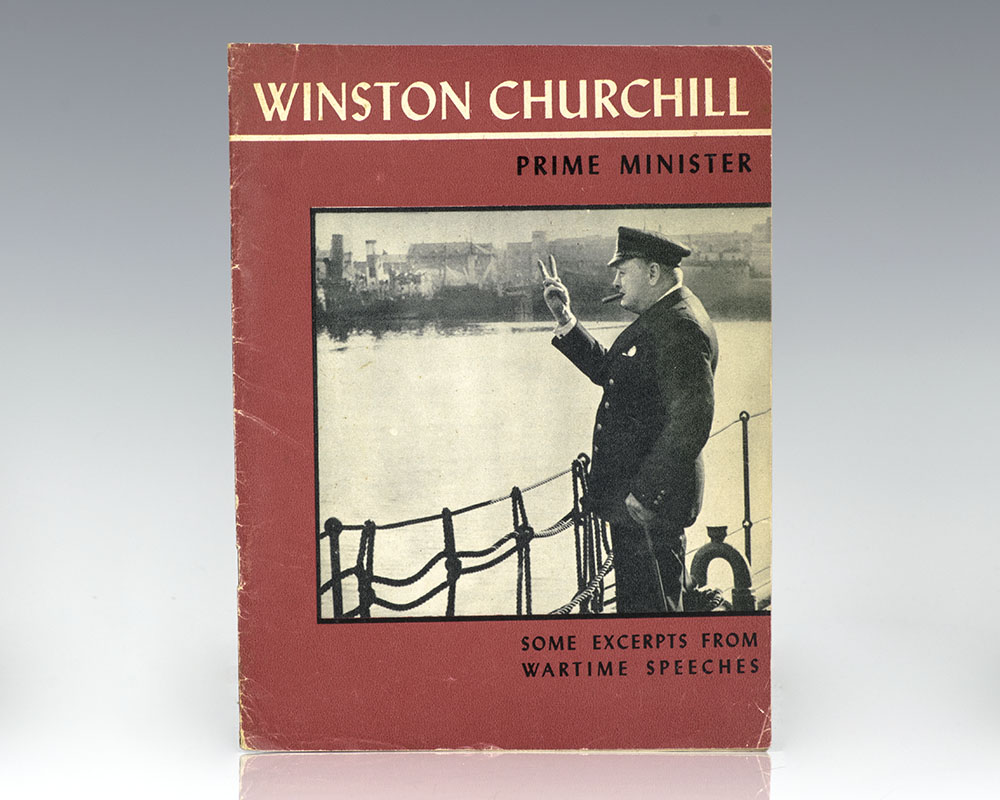 First edition of this illustrated compendium of excerpts from Winston S. Churchill's famed wartime speeches. Octavo, original illustrated wrappers as issued, each spread features a black and white photograph of Churchill accompanied by a quote from his WWII speeches and broadcasts. In near fine condition.