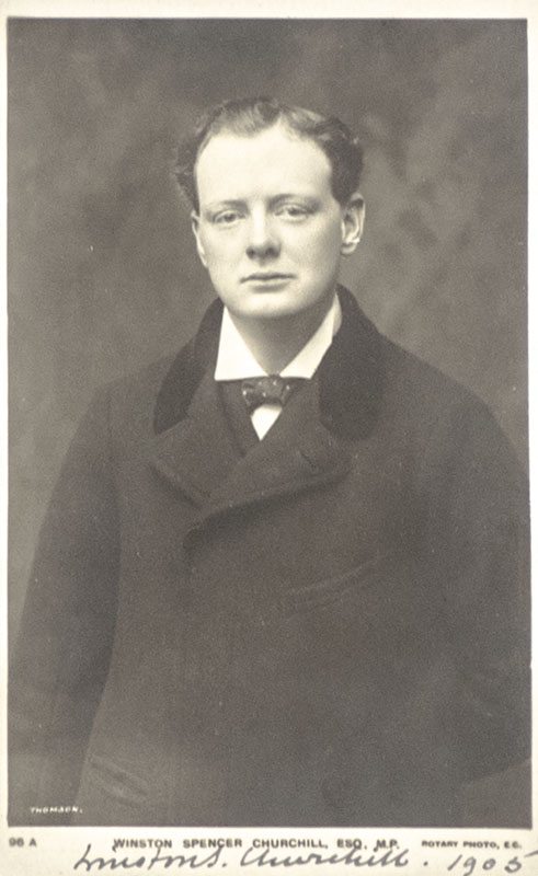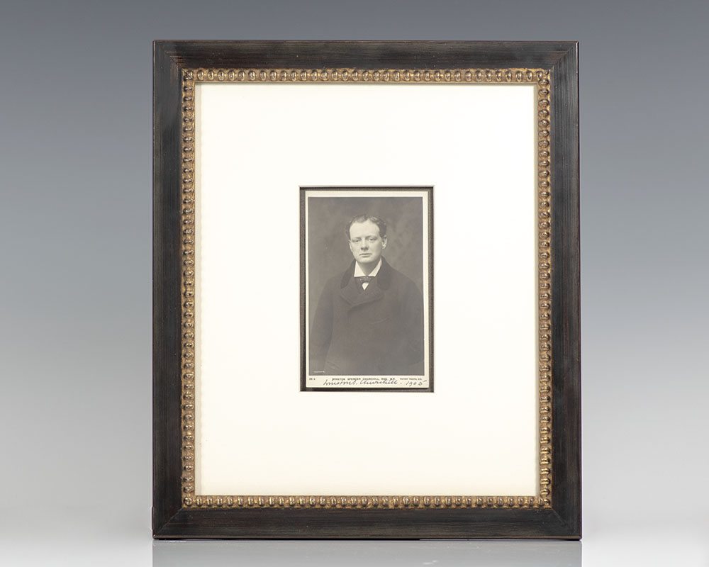 Black and White Rotary Photograph of Winston Churchill, while he was the Under-Secretary of State for the Colonies. Boldly Signed "Winston S. Churchill 1905." Matted and framed. The entire piece measures 13.5 inches by 11.75 inches.